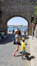 Eh 2. günün akşamında artık Rodos merkeze inmek şarttı tabi bizim için. Arabayı şehir surlarının hemen dibinde bir sokağa bıraktık ve şehrin kapılarının birinden girdik içeri. Efe bayıldı resmen kale gibi olmasına. Çok hoşuna gitti.